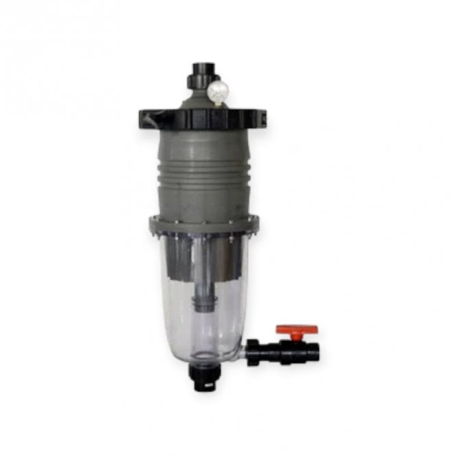 Dual stage filtration- Incoming water enters multiple hydro cyclones, generating a strong centrifugal effect. Around 80% of the incoming dirt load is spiralled down to its clear sediment chamber, the outgoing water is finally polished via its inbuilt cartridge filter, producing crystal clear water.